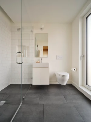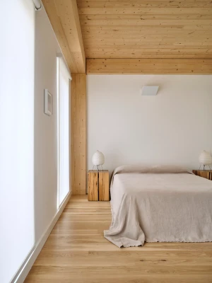 Mass timber was selected as the building’s structural system. Cross Laminated Timber (CLT) panels support the floor and roofing assemblies. CLT was chosen for its sustainability, its biophilic properties, and for the efficiency of a prefabricated system. Minimizing on-site assemblies and reducing the impact of construction on the community were design drivers. Unit interiors showcase the mass timber structure throughout. Blower door tests were conducted on all apartments ensuring passive housing standards were met. Energy Recovery Ventilators (ERVs) bring fresh air into each apartment.