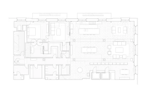 This loft renovation reimagines a rare space for a Manhattan family within a neoclassical building in SoHo. Previous renovations separated the apartment into multiple units and created mezzanine areas with circuitous circulation. The design reallocates mezzanine floor area to shape a new living space within the historic building shell, composed around a grid of six cast iron Corinthian columns. Elements of the original building were carefully restored—Italian marble flooring, sixteen foot high vaulted brick ceilings and oversized double-hung windows.